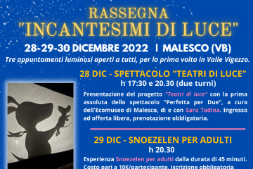 L'Ecomuseo di Malesco vi invita alla rassegna "Incantesimi di luce" con tre appuntamenti luminosi aperti a tutti, per la prima volta in Valle...