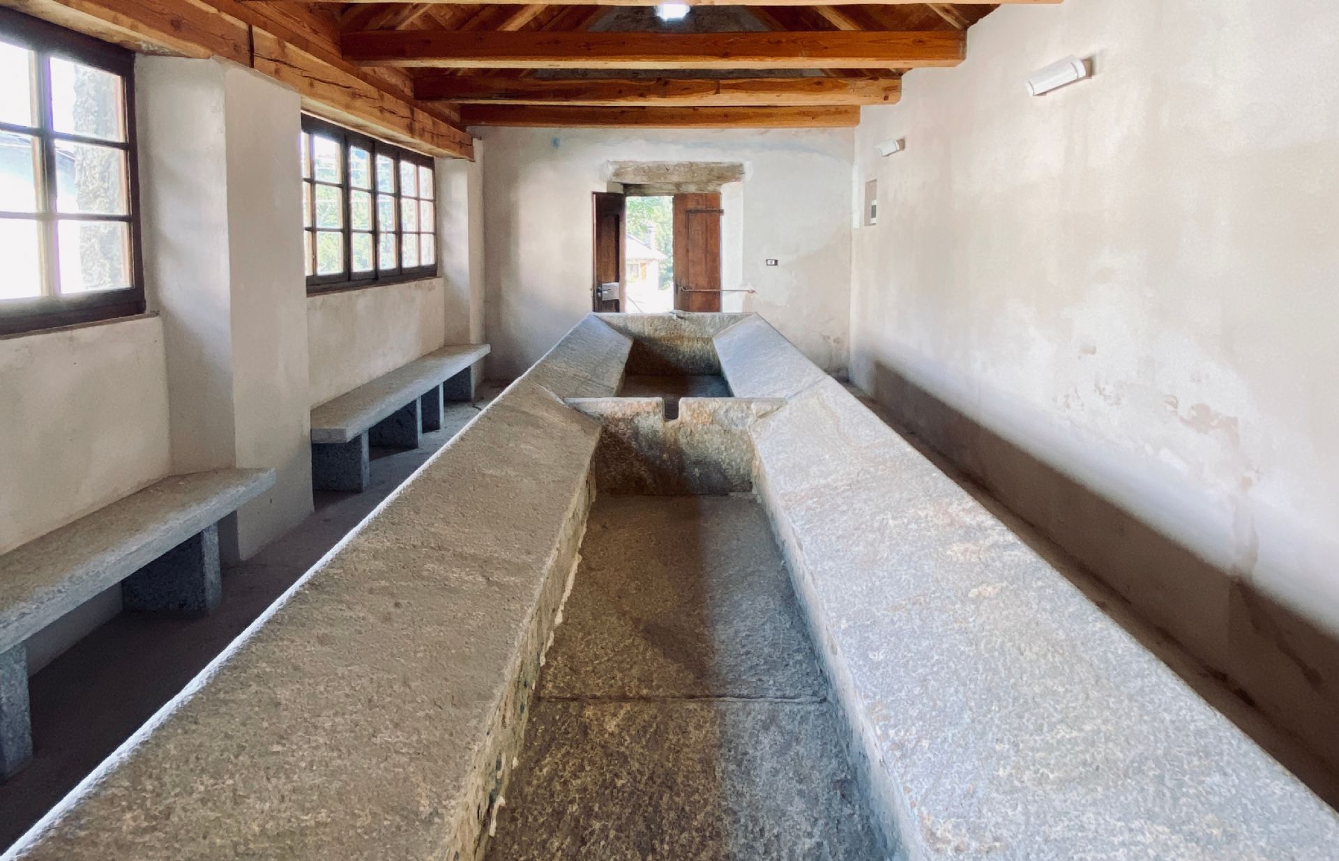 L’edificio si trova in centro al paese ed è realizzato in pietra e calce con tetto in piode. Al suo interno vi sono le tre vasche originali in pietra locale per una lunghezza complessiva di 6 metri: due più grandi e una più piccola usata che veniva utilizzata per lavare i panni dei malati. Il lavatoio, di datazione incerta, è stato restaurato nel 1998.