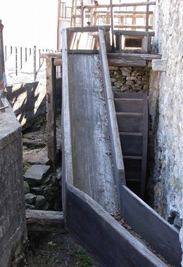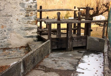 Questo mulino, il più grande dei 54 ancora esistenti nei primi decenni dello scorso secolo in Valle Vigezzo, rimase operativo sino al 1979. Si tratta di una costruzione secentesca a forma di “L” sviluppata su due piani di cui uno seminterrato. Il Mulino comprende un ampio locale con tre macine dedicate a diverse lavorazioni per prodotti alimentari: per segale e frumento , la prima; per ricavare farina la seconda; e per le castagne e il granoturco, la terza.