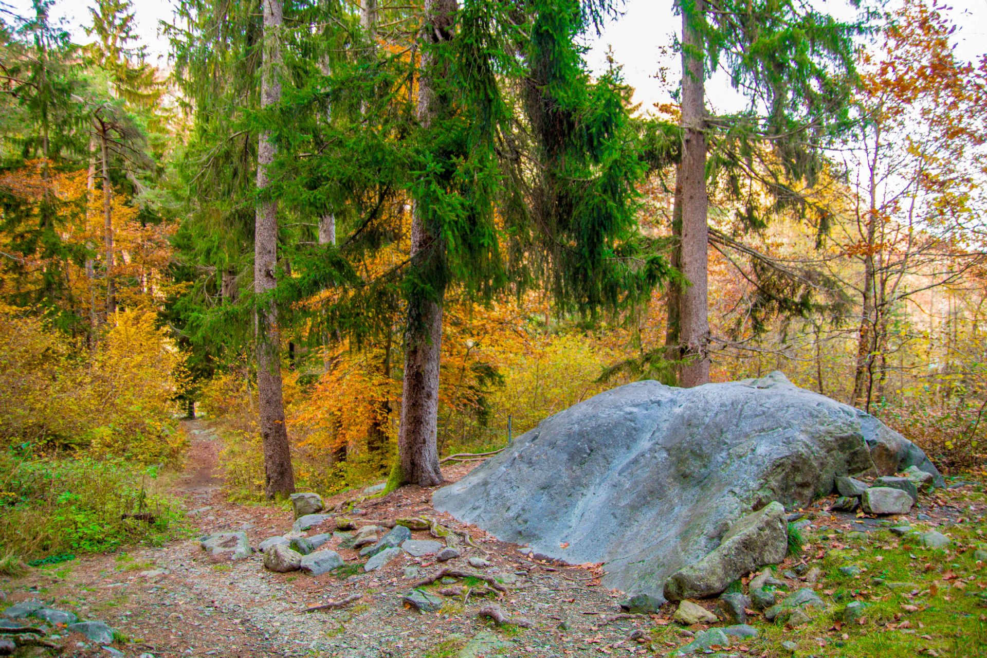 Ad est dell’abitato si trova un grosso masso erratico di pietra ollare, conosciuto come “Sasso Scivolone”. La tradizione vuole che le giovani donne scivolano su di esso come rito propiziatorio di fertilità. Lì vicino si trova anche un Masso Cuppellato detto “sas d’la lesna” (sasso del fulmine) a causa delle piccole incisioni tondeggianti dette cuppelle spesso collegate tra loro con piccole incisioni a mò di canalette.