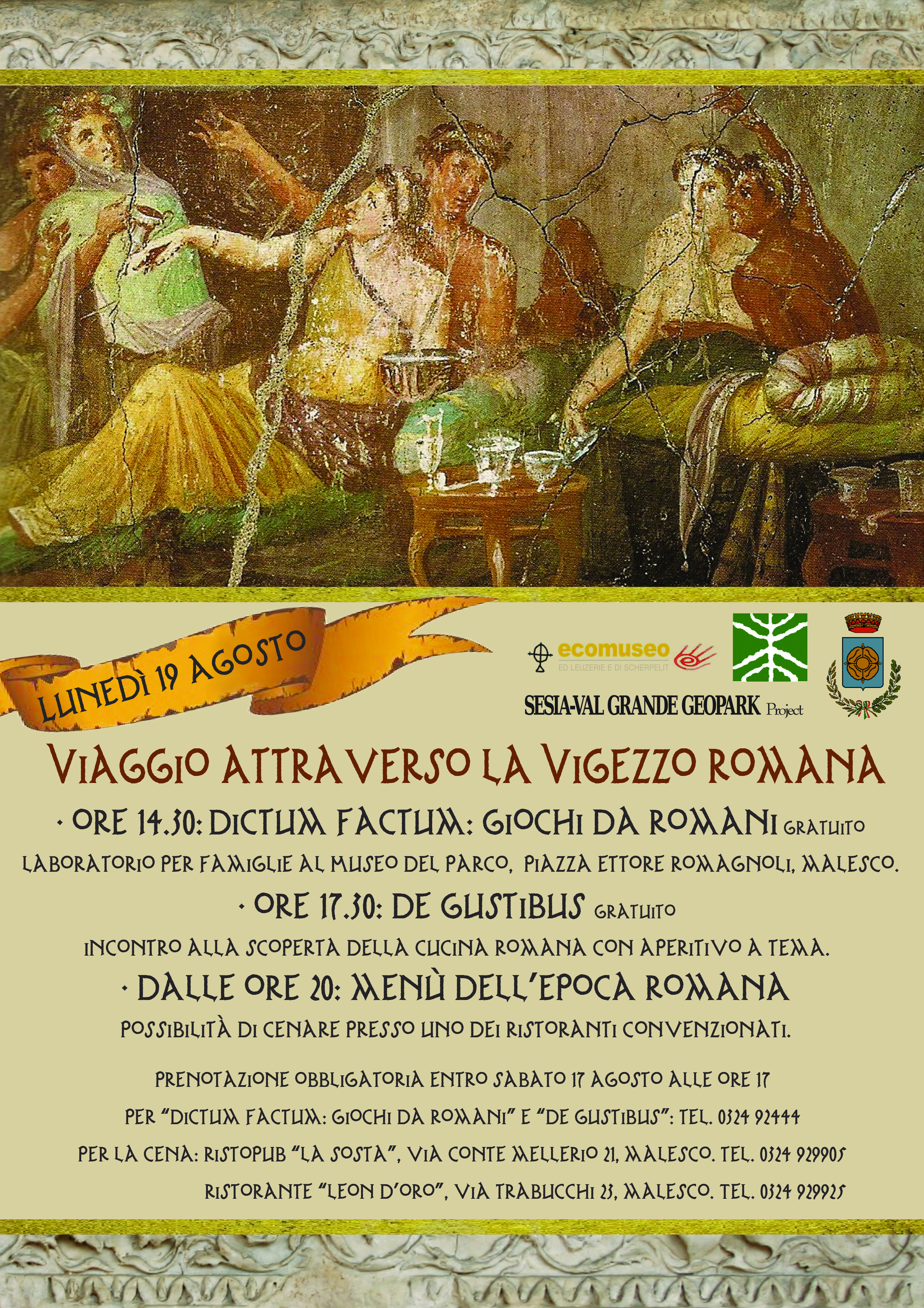 - dalle ore 20 "Menu dell'epoca romana" possibilità di cenare e gustare un menu con pietanze dell’epoca romana presso uno dei ristoranti convenzionati.