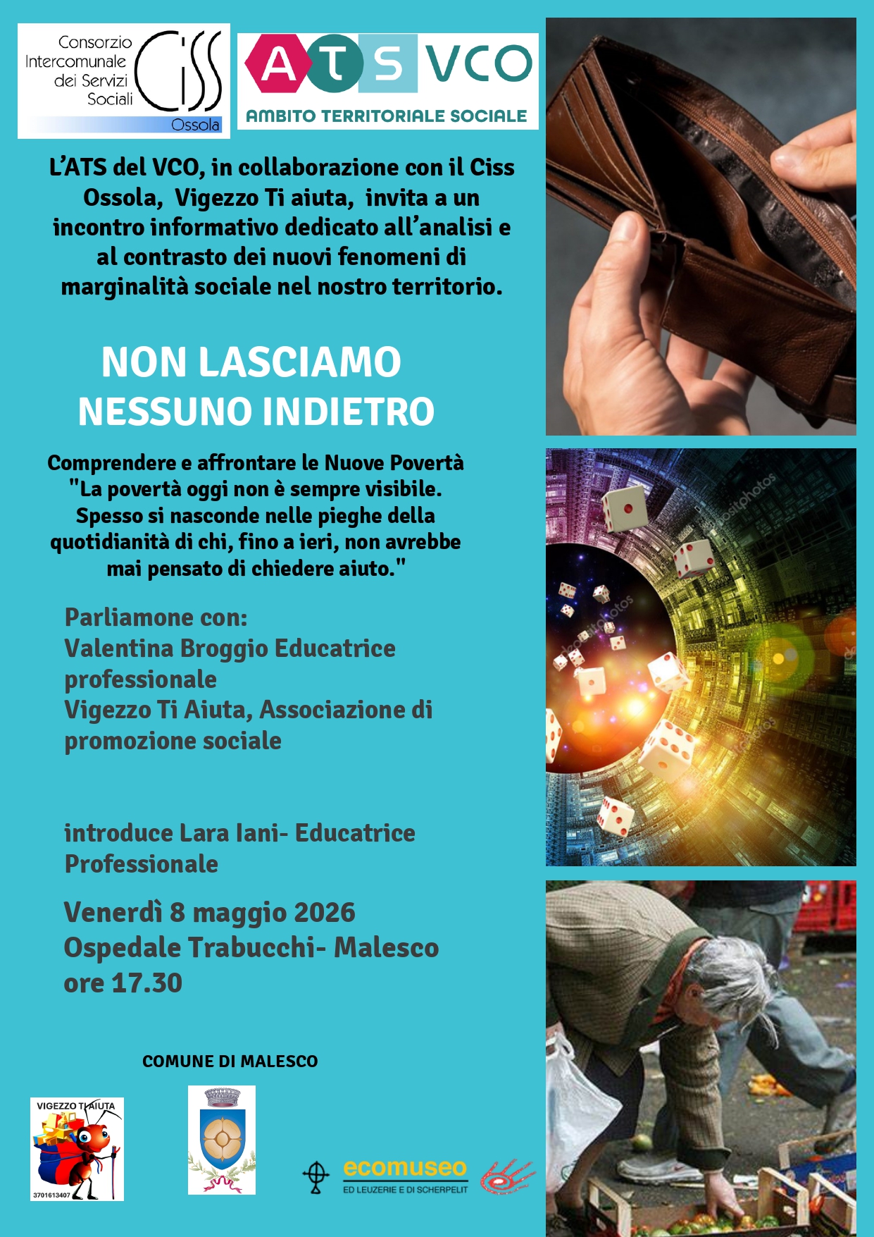 L’Ecomuseo regionale di Malesco è lieto di prendere parte all’iniziativa promossa dal CISS Ossola, in programma venerdì 8 maggio 2026, nell’ambito del più ampio impegno sul territorio per il contrasto alla povertà e alle nuove vulnerabilità sociali.