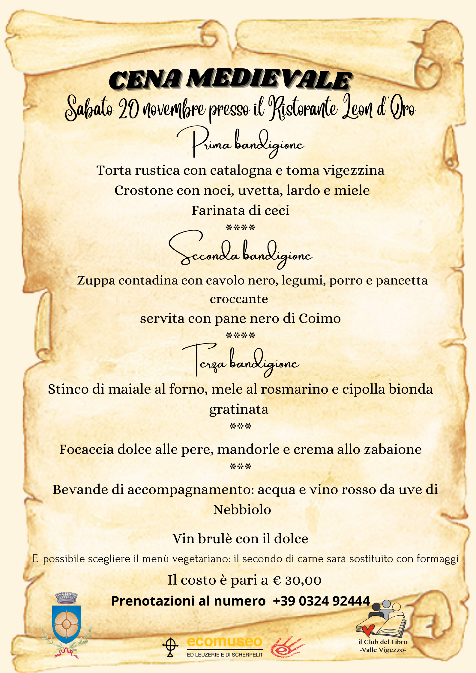 L'evento terminerà con la Cena medievale presso il Ristorante "Leon d'Oro".